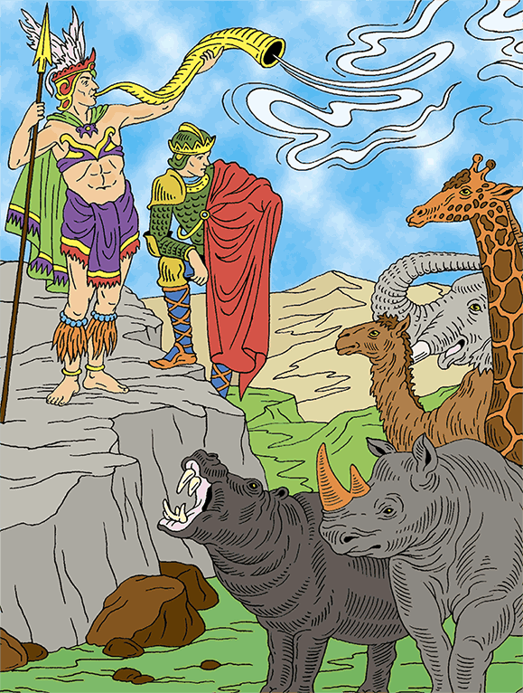 Он дунул в свой волшебный рог, и все звери пришли на его зов, но никто не мог сказать, где находится Белая страна.