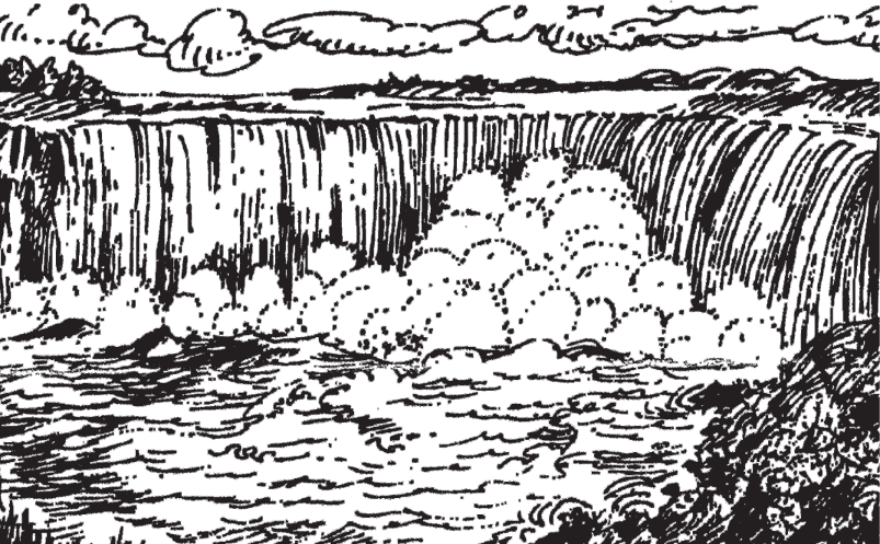 В своем течении река достигает утеса. Этот утес, покрытый толстым слоем известняка, и создал Ниагарский водопад. Затем падающая вода углубляла русло реки. И сейчас высота падения воды гораздо больше первоначальной.