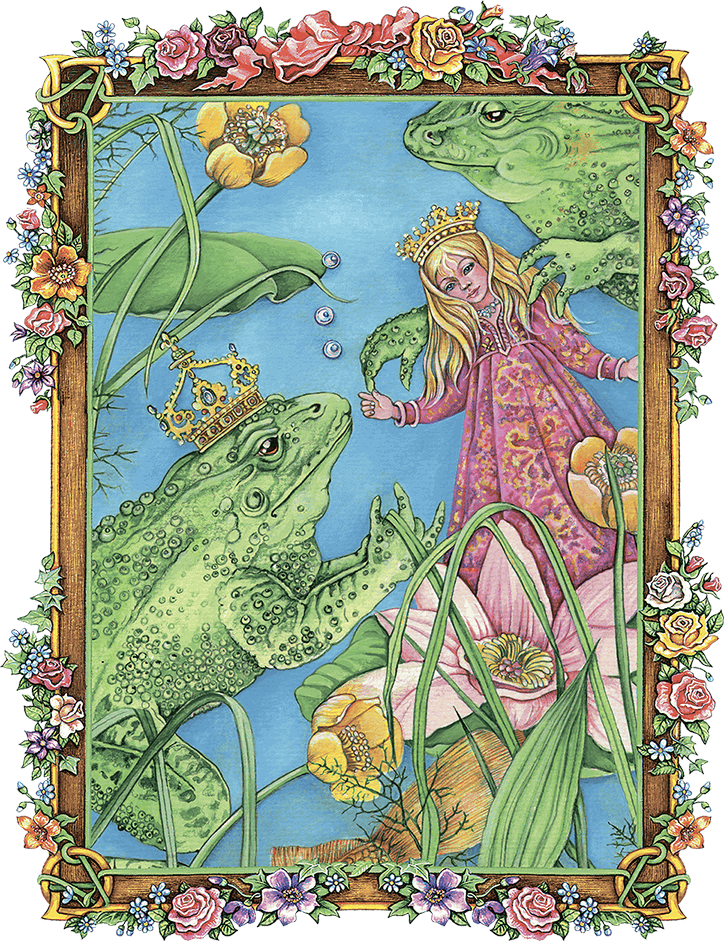 – Тише! Иначе она проснётся и убежит от нас, – сказала старуха жаба. – Давай-ка сделаем вот что: высадим её посередине реки на широкий лист кувшинки, оттуда она не сбежит, а мы пока соорудим тебе гнёздышко, где ты будешь жить с этой красоткой.
