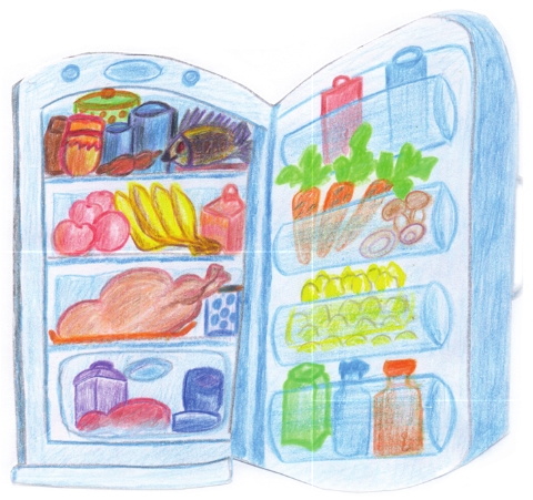 Замечательный предметУдивляет белый свет!Он на кухне обитает,Маме очень помогает.В нём деревья не растут,Но, смотрите, – фрукты тут,И сосиски, и котлеты,Щи, борщи и винегреты.Вот сметана и кефир,Очень вкусный твердый сыр!..Всё на свете здесь хранится!Хочешь? – Можно подкрепиться.Этот шкафчик всем знаком,С ним мы весело живём!/ Холодильник /