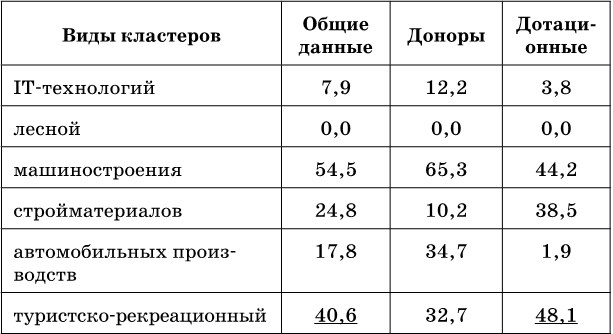 В целом в регионах сформировалась довольно сбалансированная по группировке кластеров производственно-экономическая база развития.
