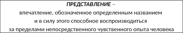 За счет возникновения подобных границ происходит переход от впечатления к представлению – то есть процесс опознания, категоризации некоего фрагмента реальности, присвоения ему конкретного наименования. Наличие наименования дает человеку возможность взаимодействовать с представлением о любом фрагменте реальности даже тогда, когда сам фрагмент не может быть непосредственно воспринят. И, наконец, наличие наименования фиксирует каждый фрагмент реальности в виде соответствующего фрагмента картины мира и обеспечивает единство отношения, способов восприятия, оценки и взаимодействия с этим фрагментом в совершенно разных условиях. Можно сказать, что только определенное представление о любом предмете дает человеку возможность оптимального взаимодействия с ним.