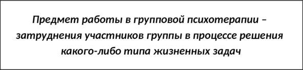 Исходя из такого представления, можно сформулировать то, чем, собственно говоря, занимается групповая психотерапия (разумеется, в нашем понимании):