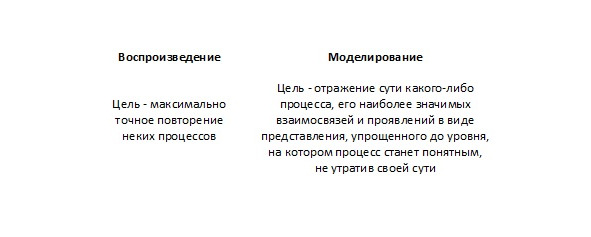 При этом моделированием мы называем процесс, принципиально отличающийся от воспроизведения.