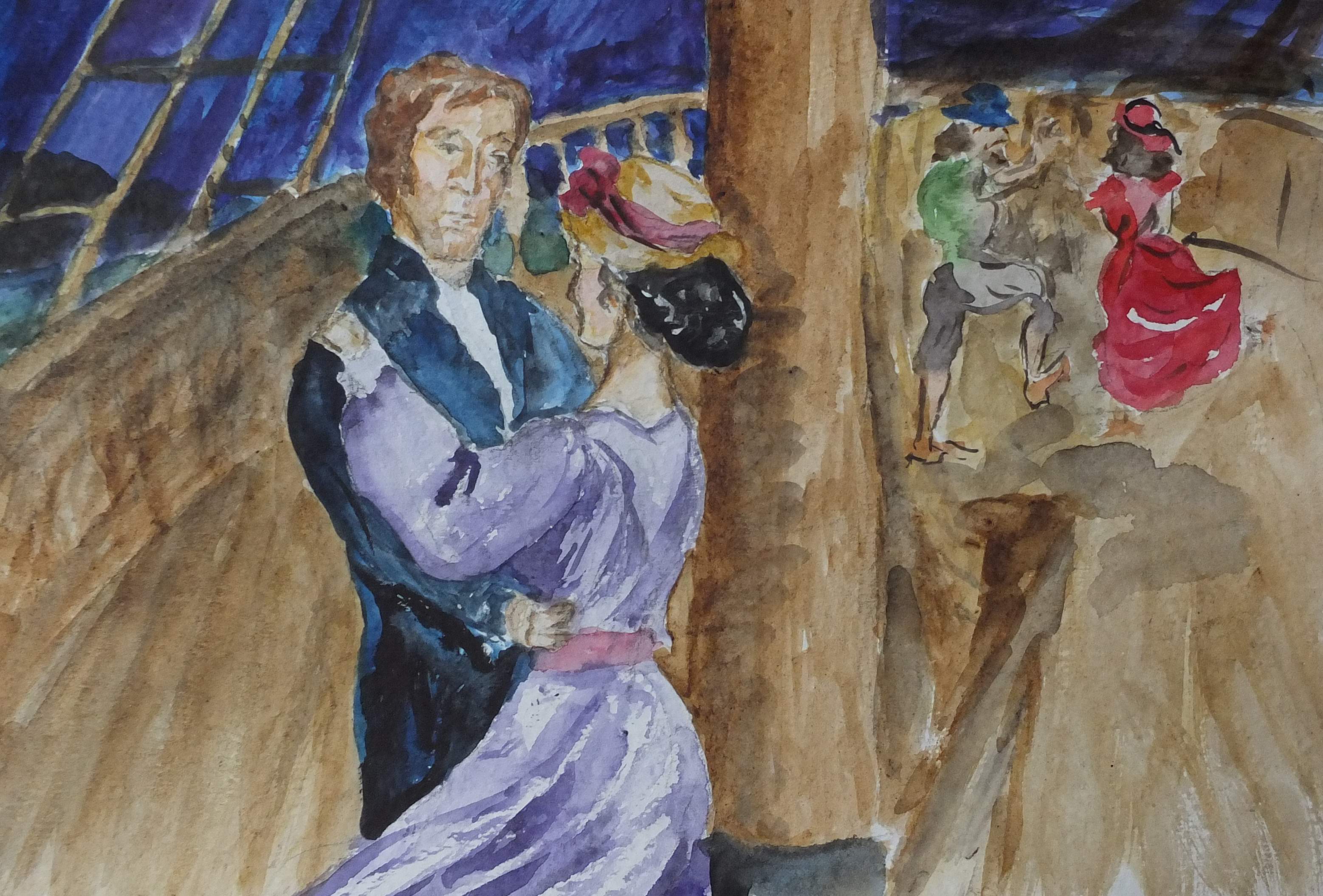 С наступлением вечера жара уступила место приятной прохладе. Те из гостей, кто стремился продолжить пиршество, пьянствовали в кают-компании, в их числе были епископ, губернатор и его сын. А на палубе оркестр старался вовсю, дамы с кавалерами лихо отплясывали на буковых палубных досках. Испанские девушки, присматривая себе партнёра для танцев, в конце концов обратили внимание на стройного молодого мужчину в английской форме, который стоял поодаль, на полуюте, не выражая никакого желания примкнуть к всеобщему веселью. Испанки были заинтригованы таким необычным явлением, подступали поближе и заливисто хохотали, но он не обращал на них никакого внимания. По-прежнему опершись о фальшборт, Смит грустно смотрел на воду и мечтал только об одном: чтобы весь этот гвалт затих, и он смог бы пойти спать. Вдруг он услышал направляющийся в его сторону стук каблучков и поднял голову. Это оказалась одна из молодых испанок, и она с обворожительной улыбкой протянула ему руку.