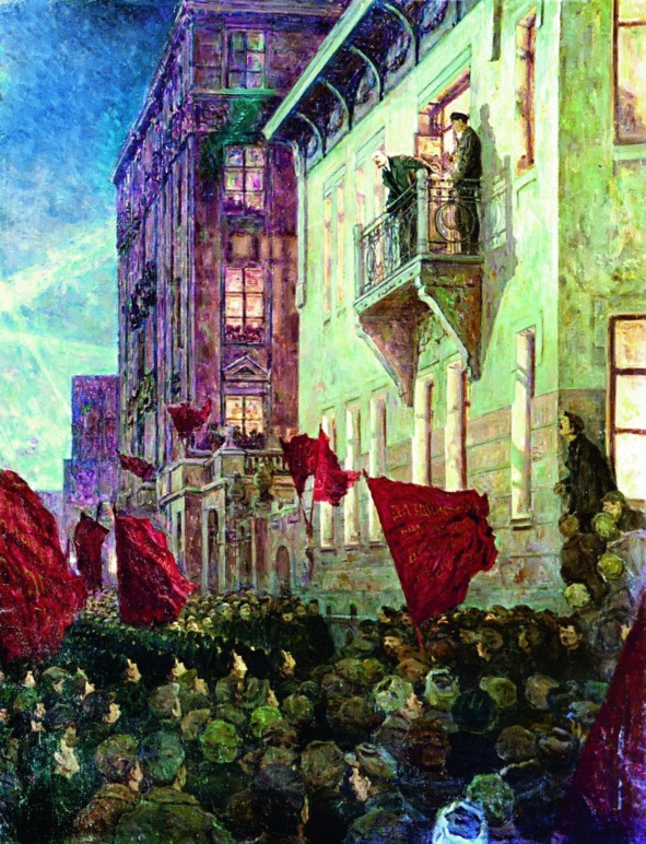 Художник А. Моравов. Выступление Ленина с балкона дворца Кшесинской