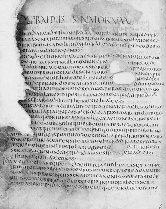 Рукопись VI века, содержащая VI–VIII книги Кодекса Феодосия.
