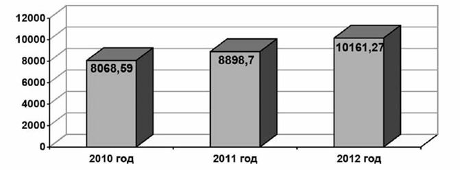 Средний размер государственной социальной пенсии детям-инвалидам в области вырос в сравнении с 2010 годом почти на 26 % и составил в 2012 году 10161,27 руб. (гистограмма 2)31.