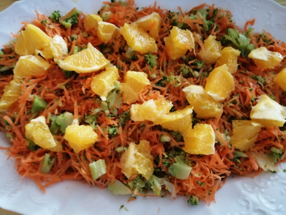 Салат №1 Морковь, апельсин и мороженная брокколи.