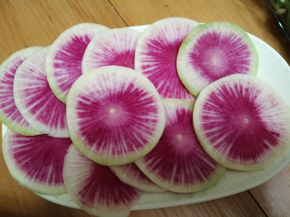 Кусочки арбузной редьки подойдут вместо хлеба
