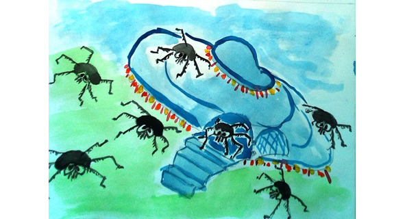 Леня разозлился и начал пинать ногами маленькие сухие веточки под ногами. Из под горы веток выполз муравей и строго произнес: