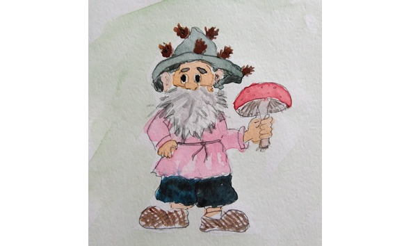Каждое утро Леня делал зарядку. И сейчас он тоже стал энергично приседать, делать махи ногами и даже прошелся на руках вокруг дерева. А когда Леня, немного запыхавшись, встал на ноги, он увидел прямо перед собой старичка – лесовичка. Небольшого росточка дедушка со смешной бородой, торчащей в разные стороны, шапкой в шишках и большим грибом в руках, внимательно смотрел на Богатыря.