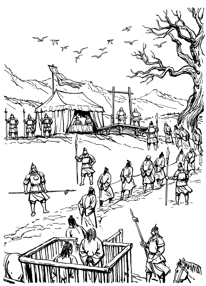 Итак, он послал кого-то привести Шэ Сян, сказав, что она совершила ошибку и должна понести наказание. Шэ Сян сказала: «Что я сделала не так, за что я должна понести наказание? Кроме того, я вождь, я тебе не подчиняюсь!». Ма Е ответил: «И что с того? Твой авторитет ничего не значит. Я занимаю пост главного военачальника. Сейчас же расправлюсь с тобой!». Пока он говорил, его приближенные стянули с Шэ Сян рубашку и избили ее кнутом. Лицо Шэ Сян посинело, но она все же выдержала пытку. Когда люди снаружи услышали, что их лидера избили, они все тут же подбежали, заблокировали вход и закричали: «Госпожа, они причинили вам вред! Чего вы ждете? Прикажите атаковать их! Мы все пойдем за вами!». Многие люди выхватили оружие, готовясь сражаться. Как только Ма Е услышал это, он обрадовался. Он ждал, что они нападут и он сможет послать войска, чтобы подавить восстание! Шэ Сян была совершенно спокойна, она разгадала замысел Ма Е и обменялась взглядом с Лю Шучжэнь, которая пришла вместе с ней. Она вышла и сказала своим людям: «Если мы взбунтуемся, он пошлет войска убивать нас, и тогда его план осуществится. Не предпринимайте ничего, доверьтесь мне». Когда люди разошлись,