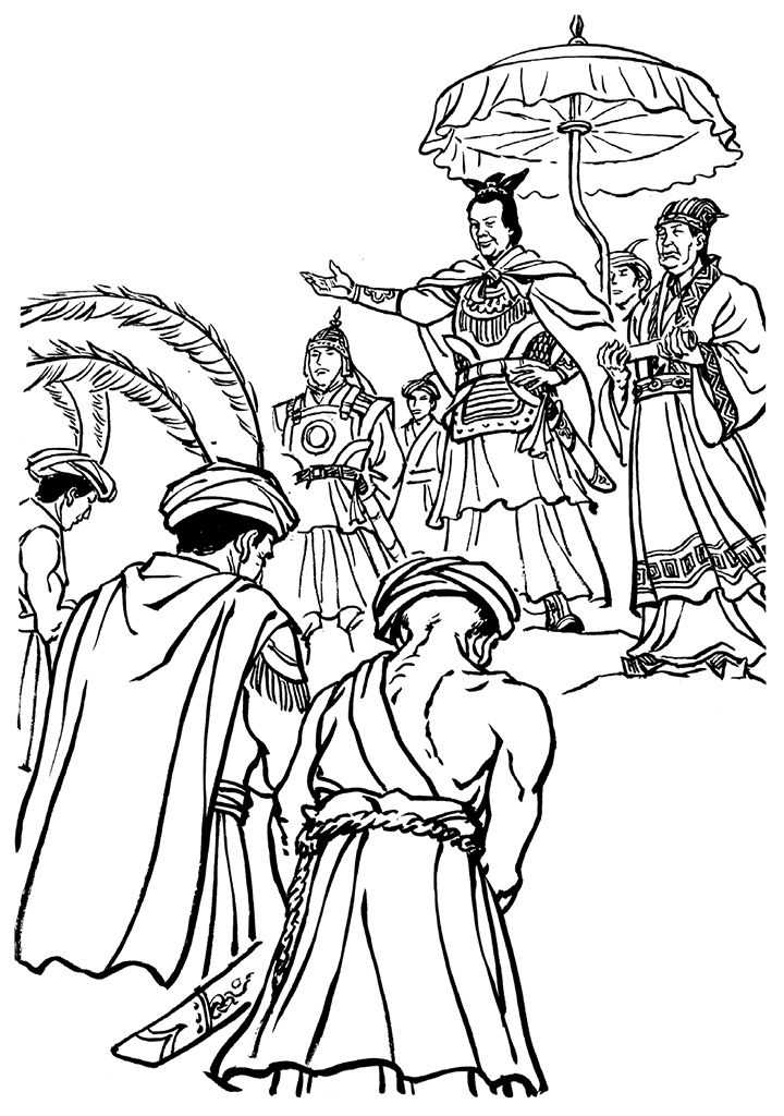На следующий день госпожа Сянь приехала в военный лагерь Ли Цяньши с тысячей солдат, одетых в крестьянскую одежду, которые несли на плечах множества разных вещей. Когда они подошли к входу, солдаты закричали внутри: «Жена правителя области лично пришла доставить еду и припасы, откройте дверь немедленно!» Услышав это, Ли Цяньши усмехнулся и приказал открыть дверь. Как только ворота были открыты, госпожа Сянь отдала приказ, и солдаты достали из своих корзин мечи и копья и ворвались внутрь. Ли Цяньши был беззащитен и быстро убежал, как же его людям не быть в смятении? Госпожа Сянь преследовала разгромленных противников, одержав полную победу. В это время генерал Чэнь Басянь повел свои войска на подавление бунта и объединился с солдатами госпожи Сянь. Когда Чэнь Басянь увидел, что госпожа Сянь такая мудрая и доблестная, он, не переставая,стал ее хвалить. Госпожа Сянь также восхищалась Чэнь Басянем и сказала мужу: «Генерал Чэнь – человек необычайной мужественности и завоевал сердца людей. Мы должны помочь ему».