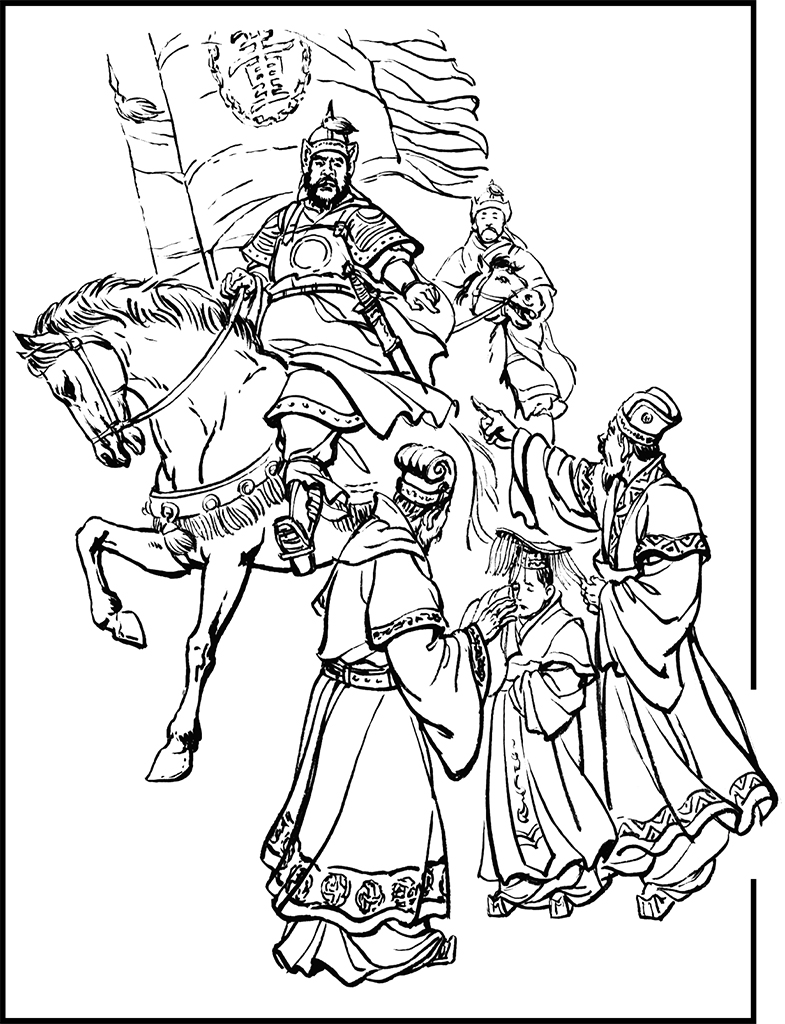 Чжан Жан и Дуань Гуй отвели молодого императора и Чэнь Лювана к реке. Они были обеспокоены, что не могут пересечь реку, а с тыла прибудут преследователи. Видя, что им негде спрятаться, они были вынуждены бежать от Хуанхэ. Министры поспешно сопровождали молодого императора и Чэнь Лювана и возвращались. Они шли, шли и вдруг увидели большую группу людей, бегущих на них, которые в мгновение ока заблокировали их. Здорово! Пыль поднималась долго, и боевые знамена заслонили только что вышедшее солнце. Молодой император испуганно вскрикнул «Вау!», и министры задрожали от страха. В этот момент тучный генерал с черной бородой выехал на лошади перед молодым императором. Министр Цуй Ли не знал Дун Чжо, поэтому он смело крикнул: «Ты, кто ты такой? Посмел встревожить императора. Убирайся отсюда!». Голос Дун Чжо был намного громче, чем у Цуй Ли. Он расширил глаза и громко сказал: «Что? Говоришь мне убираться отсюда? Ха, разве тебе не нужна голова?». Он повернулся лицом к молодому императору и сказал: «Не бойся, император. Я Дун Чжо, и я здесь, чтобы защитить императора!». Когда министры услышали это, они начали гудеть и жаловаться. Один министр, заикаясь, начал говорить: «Теперь… Теперь, когда хаос… хаос уже утих, солдатам снаружи… солдатам и лошадям не нужно входить… в столицу». Дун Чжо снова сверкнул глазами и сказал: «Вы, министры, довели императорский двор до того, что тут говорят о вашей неспособности выстоять. Я, Дун Чжо, отчаянно бросился сюда, чтобы сопровождать, кто посмеет не пустить меня в столицу?». Министрам пришлось закрыть рты, и они не осмеливались больше высказываться.