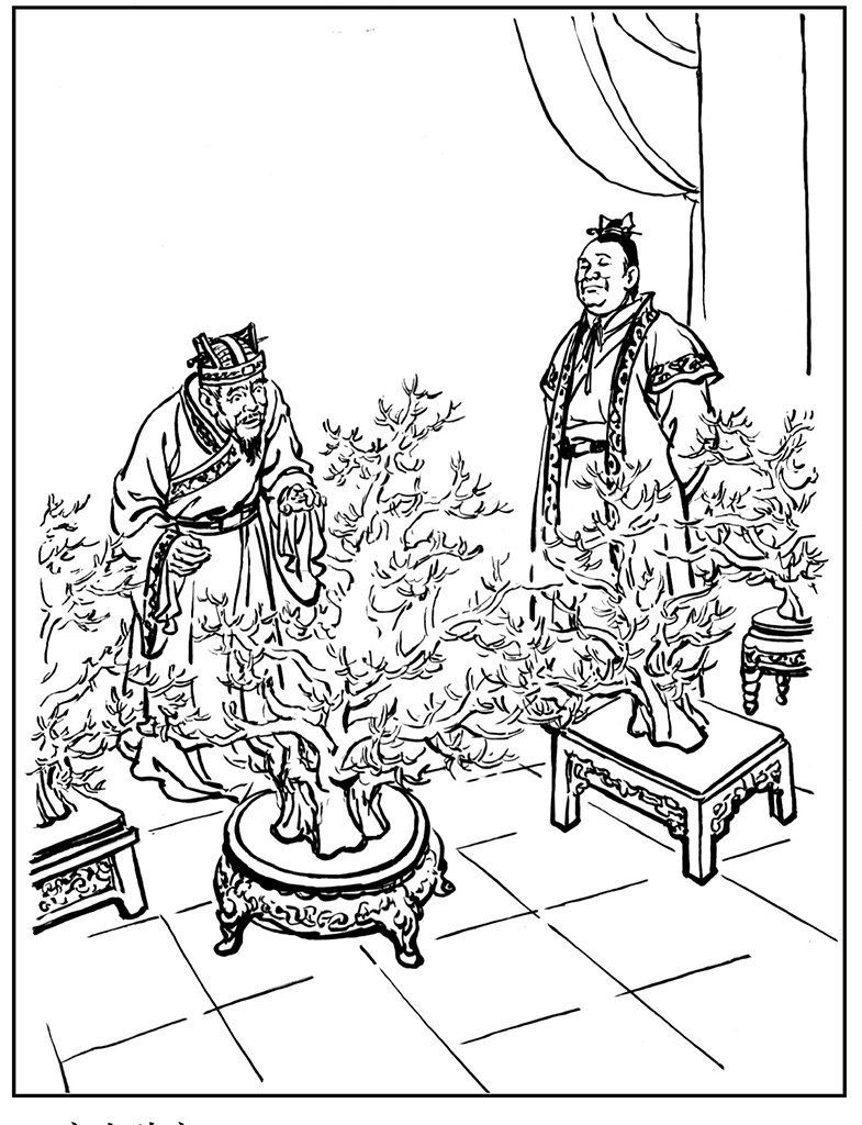 Ван Кай радостно отвез коралловое древо домой и упаковал его в ящик. Спустя несколько дней он, взяв с собой дерево, отправился с визитом к Ши Чуну. Они вдвоем ели, пили и восхваляли друг друга. Ван Кай заявил: «Вы многое повидали и многое познали, у меня есть одно сокровище, посмотрите на него тоже». Произнося эти слова, он вынул коралловое дерево. Ши Чун сразу осмотрел его со всех сторон. Ван Кай подумал про себя: «Посмотрим, вынесешь ты такое или нет!». Но он и не думал, что Ши Чун, повернувшись, поднимет железный жезл «жуи»1, ударит им коралловое дерево и в один миг искрошит его в порошок. Ван Кай едва не упал в обморок и, топая ногами, закричал: «Ты дошел до крайности! Позавидовал, что у меня есть коралловое дерево! Ты поплатишься!». Ши Чун, скривив рот, сказал: «Тебе не зачем сердиться. Я сейчас верну тебе дерево». Он отдал распоряжение своим домочадцам: «Вынесите все наши коралловые деревья, пусть гость посмотрит их и унесет одно с собой». Вскоре домочадцы Ши Чуна принесли шесть или семь коралловых деревьев, и поставили в зале во всем их великолепии. Ван Кай детально рассмотрел их, каждое выше метра и красивее, чем было его дерево. Он долго в оцепенении смотрел на них.