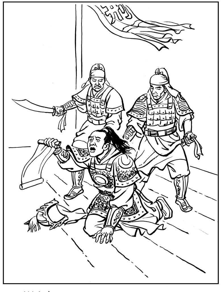 Императрица Цзя, услышав от Ли Чжао, что на уме у правителя Чу, следом вспомнила, как Вэй Гуань, притворившись пьяным, выступал против того, чтобы ее наследник занял императорский трон, как чуть не потеряла место полновластной императрицы, и ей очень хотелось отомстить. Стиснув зубы, она сурово процедила: «Хорошо, пусть правитель Чу поступает как хочет!». От имени императора она подготовила указ, повелевающий правителю Чу расправиться с правителем Жунаня и Вэй Гуанем, обвиняемых в тайном заговоре против императора. Правитель Чу, получив указ, немедленно приказал людям Ли Чжао окружить резиденцию князя Жунаня. Ничего не понявший князь Жунаня был схвачен ворвавшимися солдатами. Стоял летний зной, а князь Жунаня, как назло, был очень толстым, и на жаре, тяжело дыша, обливался потом. Из-за того, что он был двоюродным дедом императора, солдаты не осмелились убить его, и, посадив его в повозку с навесом, обмахивали его веерами. Не дождавшись доклада об убийстве правителя Жунаня, князь Чу приказал наградить человека, убившего его, тысячей отрезов ткани. Это меняло дело, и солдаты с радостью выполнили приказ. С правителем Жунаня было покончено. Отряд, отправленный за Вэй Гуанем, убил его и всю его семью, не оставив никого в живых.