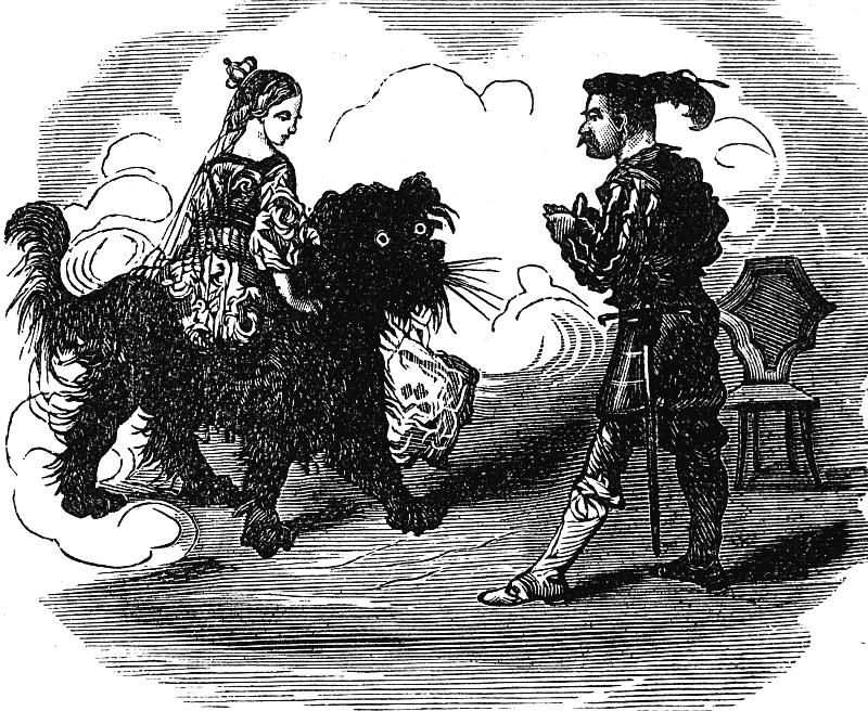 Собака исчезла, и не успел солдат моргнуть глазом, как она снова явилась. На спине ее сидела спящая принцесса, такая красавица, что ни в сказке сказать, ни пером описать.
