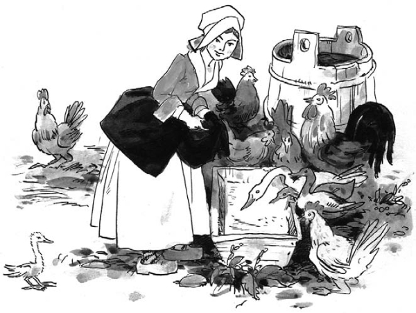 Скоро добрались и до птичьего двора. Батюшки! Что тут был за шум и гам! Две семьи дрались из-за одной угриной головки, и в конце концов она досталась кошке.