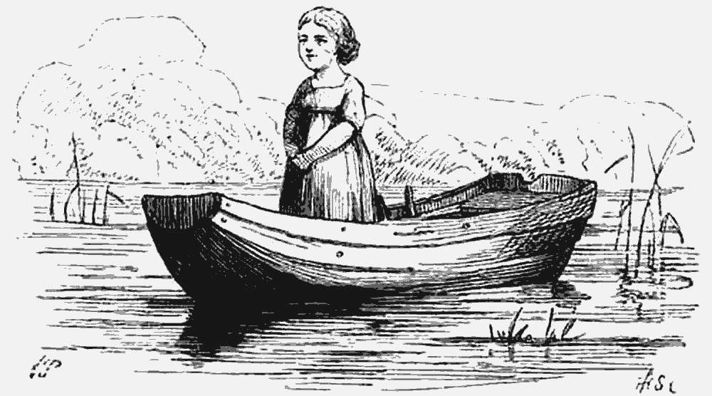 И девочке почудилось, что волны как-то странно кивают ей; тогда она сняла свои красные башмачки, первую свою драгоценность, и бросила их в реку. Но они упали как раз у берега, и волны сейчас же вынесли их на сушу, – река как будто не хотела брать у девочки лучшую её драгоценность, так как не могла вернуть ей Кая. Девочка же подумала, что бросила башмачки не довольно далеко, влезла в лодку, качавшуюся в тростнике, стала на самый краешек кормы и опять бросила башмаки в воду. Лодка не была привязана и оттолкнулась от берега. Девочка хотела поскорее выпрыгнуть на сушу, но пока пробиралась с кормы на нос, лодка уже отошла от берега на целый аршин и быстро понеслась по течению.
