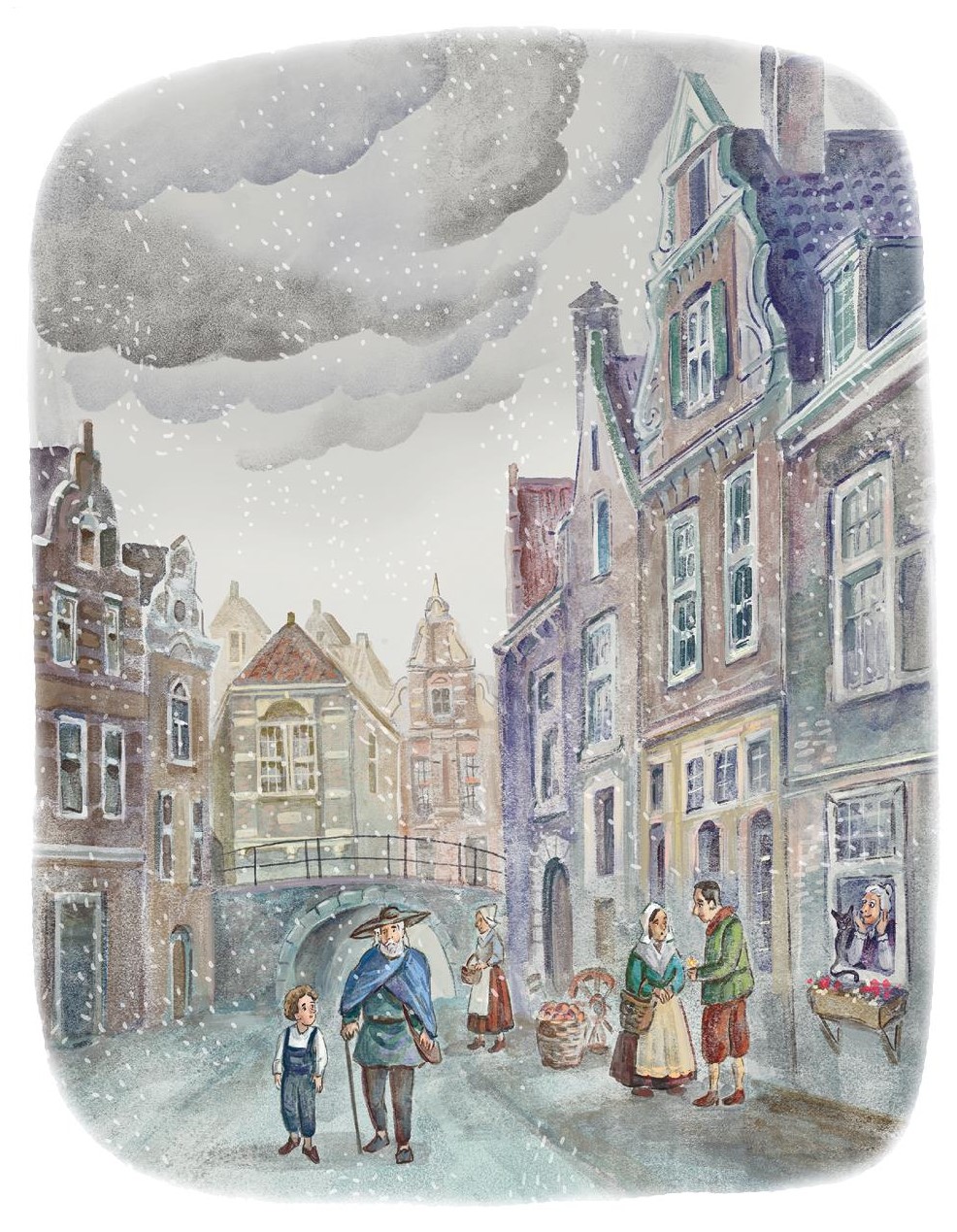 Зимою это удовольствие прекращалось. Окна часто замерзали, но дети нагревали на печке медные монеты и прикладывали их к обмёрзшим стёклам; лёд быстро оттаивал, появлялось чудесное окошечко – такое круглое-круглое, – и в нём показывался весёлый, ласковый глазок: это переглядывались мальчик и девочка, Кай и Герда. Летом они одним прыжком могли попасть друг к другу, зимою же надо было сначала спуститься на много-много ступенек, затем подняться на столько же. А на дворе завывала метель.