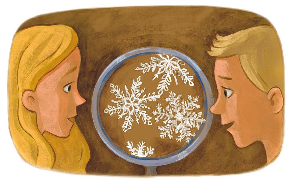 И забавлялся Кай теперь по-другому – как-то рассудочно. Однажды в зимний день, когда шёл снег, он пришёл к Герде с большим увеличительным стеклом; подставил под падающий снег полу своего синего пальто и сказал девочке: