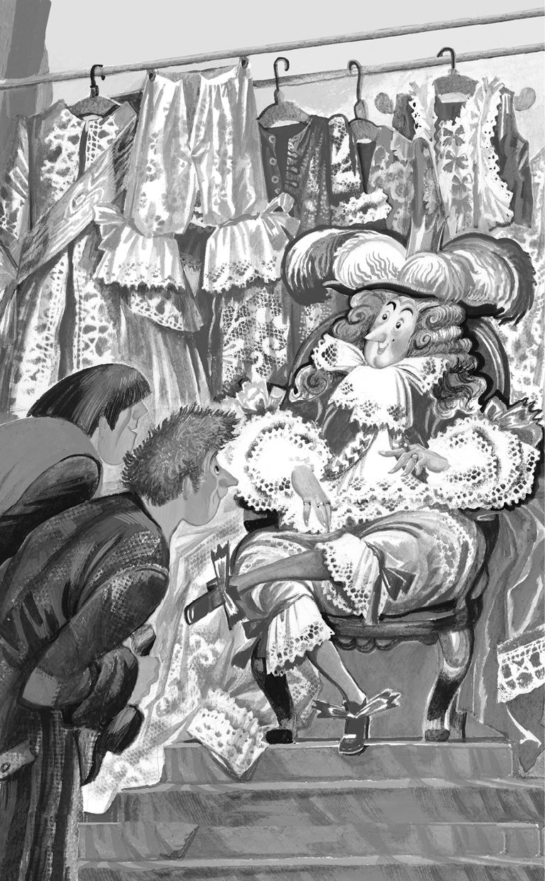 – Вот панталоны, вот камзол, вот кафтан! Чудесный наряд! Лёгок, как паутина, и не почувствуешь его на теле! Но в этом-то вся и прелесть!