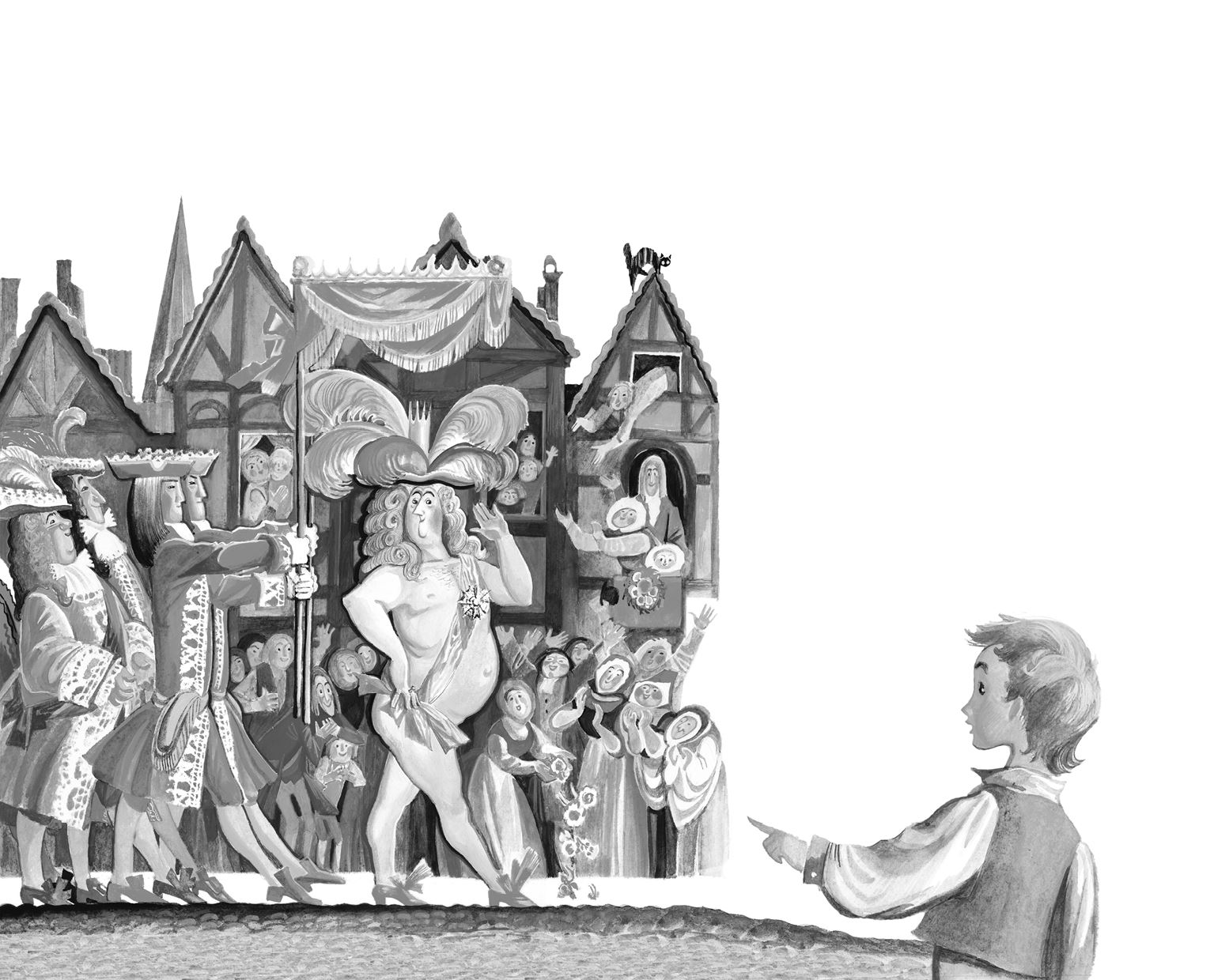 Камергеры, которые должны были нести шлейф королевской мантии, сделали вид, будто приподняли что-то с пола, и пошли за королём, вытягивая перед собой руки, – они не смели и виду подать, что ничего не видят.