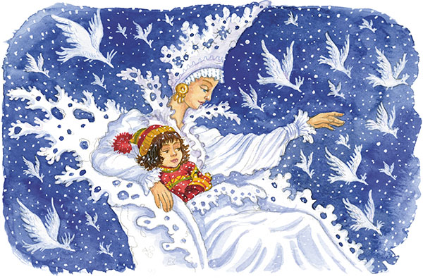 И, посадив мальчика в сани, она завернула его в свою шубу. Кай словно провалился в снежный сугроб.