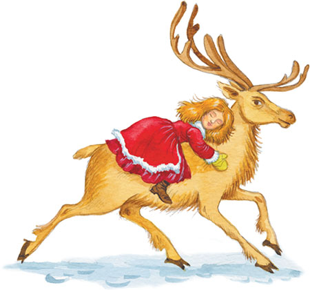 – Славно проехались! – сказала она. – Но ты совсем замёрз! Полезай ко мне под медвежью шубу.