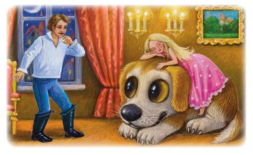 Собака отнесла принцессу назад, и за утренним чаем принцесса рассказала королю с королевой, какой она видела сегодня ночью удивительный сон про собаку и солдата: будто она ехала верхом на собаке, а солдат поцеловал её.