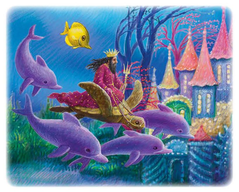 День-деньской играли принцессы в огромных дворцовых залах, где по стенам росли живые цветы. В открытые янтарные окна вплывали рыбки, как у нас, бывает, влетают ласточки; рыбки подплывали к маленьким принцессам, ели из их рук и позволяли себя гладить.