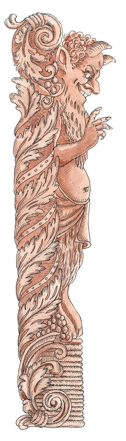 Трубочист успокаивал её и показывал, куда лучше ступать ножкой, на какой выступ или золочёную завитушку резных ножек стола. Лестница его тоже сослужила им немалую службу; таким образом они благополучно спустились на пол. Но, взглянув на старый шкаф, они увидели там страшный переполох. Резные олени далеко-далеко вытянули вперёд головы с рогами и вертели ими во все стороны, а обер-унтер-генерал-комиссар-сержант Козлоног высоко подпрыгнул и закричал старому китайцу: