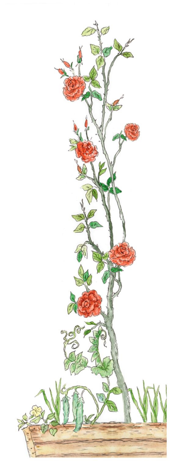Обе семьи достали себе по большому деревянному ящику и разводили в них коренья для супа и зелень. Кроме того, в каждом ящике рос небольшой розовый куст; и кусты эти чудесно разрастались. Однажды родители решили поставить оба ящика на дно желобка, и тогда от окна одной семьи к окну другой протянулись как бы две цветочные грядки. Плети гороха свисали с ящиков зелёными гирляндами, ветви розовых кустов переплетались и обрамляли окна – казалось, это триумфальные арки из листвы и цветов. Ящики были очень высоки, и детям запрещали на них карабкаться, но родители часто позволяли мальчику с девочкой ходить друг к другу в гости и сидеть на скамеечке под розами. Как весело им было играть здесь!