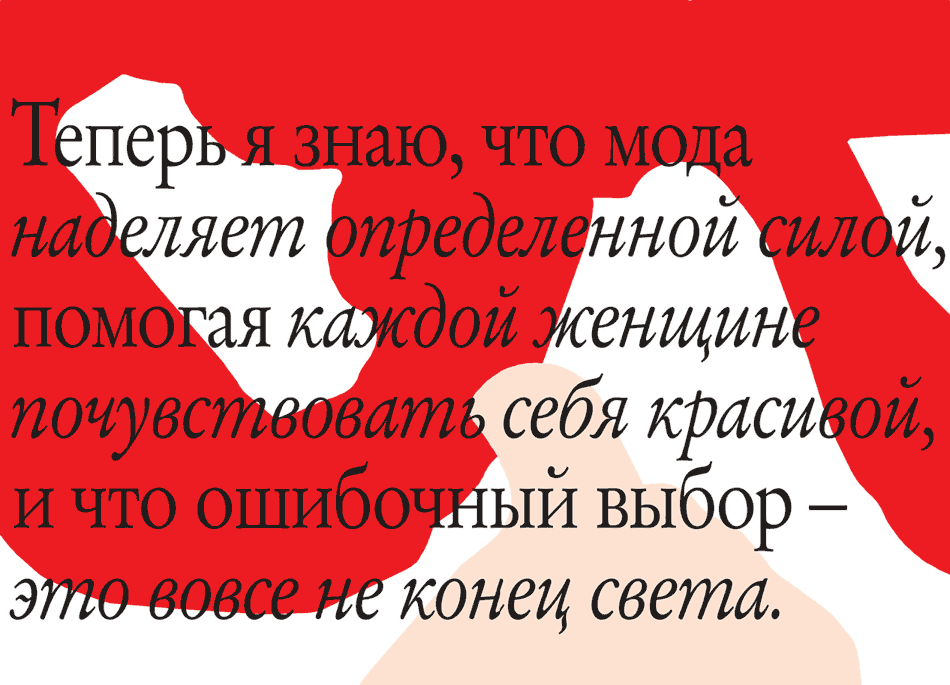 Теперь я знаю, что мода наделяет определенной силой, помогая каждой женщине почувствовать себя красивой, и что ошибочный выбор – это не конец света. Подумаешь! Даже забавно. Кому какое дело!