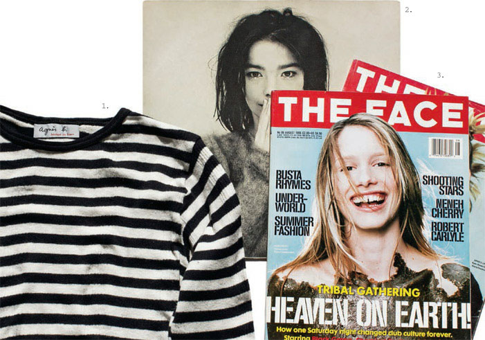 1. Джемпер от Agnès B. – никаких денег не жалко. 2. Бьорк, моя икона стиля в юности. 3. The Face, журнал, открывший для меня новый мир.