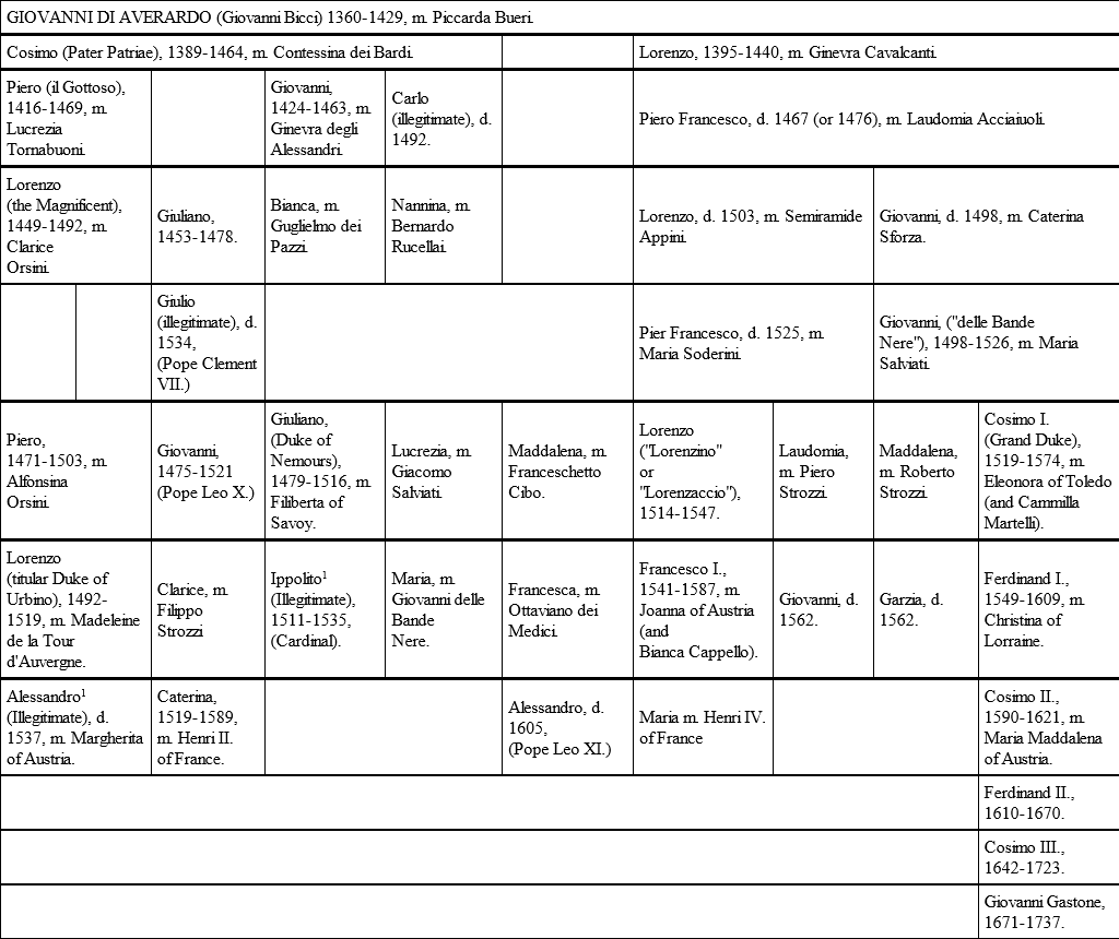 See the Genealogical Table of the Medici.