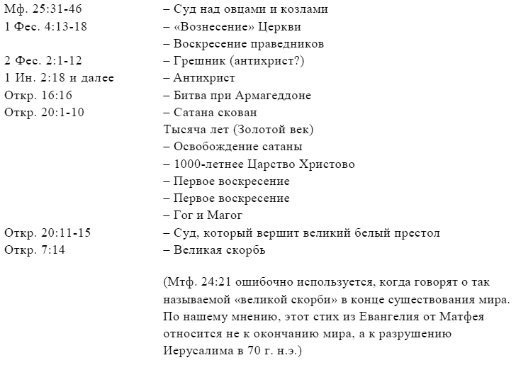 Прежде чем рассматривать диаграммы различных эсхатологических теорий, необходимо прочитать ключевые отрывки, обратив внимание на некоторые термины.