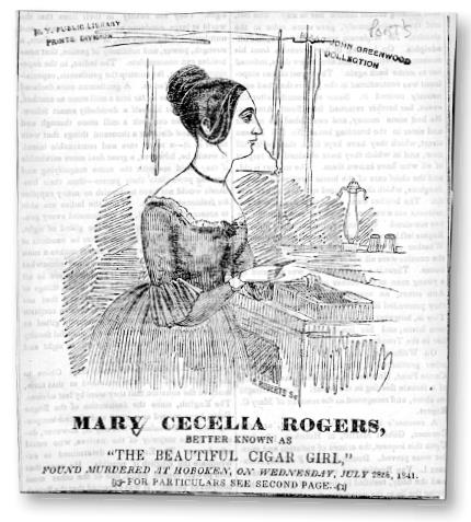 Описываемая современниками как очаровательная особа «с вороной косой», «томной улыбкой» и «гипнотически приятной» фигурой, Мэри Роджерс впервые привлекла к себе внимание общественности несколькими годами ранее, когда работала в популярном бродвейском табачном магазине, которым управлял торговец Джон Андерсон. Его клиентов объединяла одна общая черта: все они были мужчинами. Рассчитывая, что симпатичное лицо за прилавком будет благом для его бизнеса, проницательный владелец нанял 18-летнюю Роджерс в 1838 году не столько в качестве продавщицы, сколько в качестве сексуального магнита.