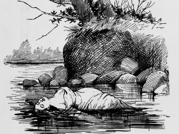 Труп Мэри Роджерс, изображенный в крайне вуайеристской манере, был найден плавающим на нью-джерсийской стороне реки Гудзон