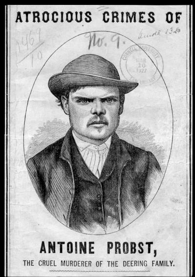 Подозрение сразу же пало на другого работника Дирингов, Антуана Пробста, которого нигде не могли найти. Мускулистый немецкий иммигрант, Пробст провел большую часть Гражданской войны в качестве «гастролера»: он поступал добровольцем на службу в одном населенном пункте, получал полагающуюся новобранцам награду, вскоре после чего дезертировал и повторял этот фокус в новом месте. Не желая терпеть тяготы и опасности армейской жизни, он в конце концов добился увольнения, «случайно» отстрелив себе большой палец правой руки. Просадив все свои деньги на спиртное и проституток, он некоторое время скитался по Филадельфии в поисках работы, пока не наткнулся на ферму Дирингов. Хотя миссис Диринг была обеспокоена угрюмым видом Пробста, ее муж, будучи сам иммигрантом, сжалился над ним и нанял его на работу.