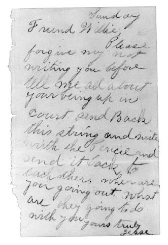 Страница из письма Джесси Помероя несовершеннолетнему заключенному Вилли Бакстеру, где он умоляет рассказать о порке, которой подвергался юный узник