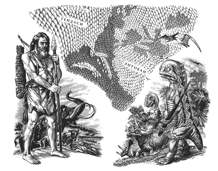 Оскалившись, Амагаст глядел на существо. Кривые и короткие ноги с плоскими ступнями и когтями на пальцах, короткий толстый хвост. Смерть скорчила лежавшее на земле тело. Амагаст ногой перевернул его. Еще одна тайна, подумал он: в руках ящер держал длинную узловатую палку.