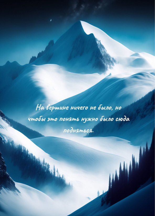 Но, несмотря на красоту и величие горы, я не мог не чувствовать одиночества и пустоты. Как будто я взобрался на вершину мира, только чтобы обнаружить, что там нет ничего, кроме снега и льда, и, чтобы понять это, я должен был подняться сюда.