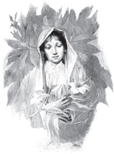 Пожалуй, ей уже исполнилось пятнадцать, но она была так мала ростом, что до сих пор казалась ребенком. Ее черные волосы разделял безупречно ровной белой линией пробор, сбегавший до высокого выпуклого лба, который сообщал всему ее облику серьезное выражение и говорил о склонности к размышлениям и молитве, подобно тому как дверь собора возвещает о совершаемых за нею христианских таинствах. Из-под высокого чела устремляла она на мир взор карих прозрачных глаз, задумчивые глубины которых напоминали воды какого-нибудь святого источника, прохладные и чистые, столь не замутненные, что сквозь толщу их различим даже ничем не запятнанный песок на его дне. Над маленьким ее ртом виднелась небольшая ямка, свидетельствующая о сдержанной страстности, в то время как прямой нос и изящно вырезанные ноздри своим совершенным очерком приводили на память те фрагменты античных статуй, что так часто исторгает из себя итальянская земля, таящая в недрах своих множество древних гробниц. Обыкновенно Агнесса держала головку и поднимала глаза с застенчивой грацией, присущей тянущейся ввысь фиалке, однако лицу ее было свойственно выражение одновременно серьезное и безмятежное, заставляющее предположить в ней незаурядную силу характера.