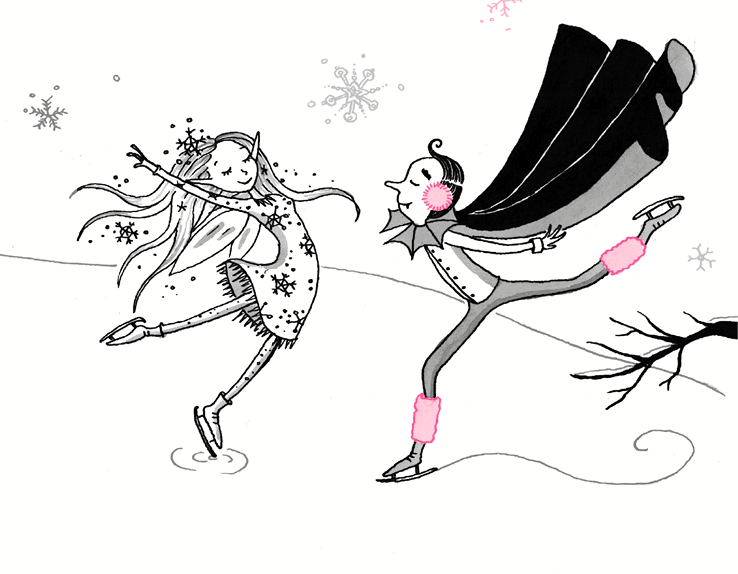 Мама отыскала свои старые коньки и наколдовала пару для каждого из нас, кроме малышки Вишенки, конечно. Та ещё слишком мала, чтобы кататься на коньках. Папа надел свой самый тёплый шерстяной вампирский плащ, а Хрусталинка прошла по дому, открывая настежь все окна и двери.
