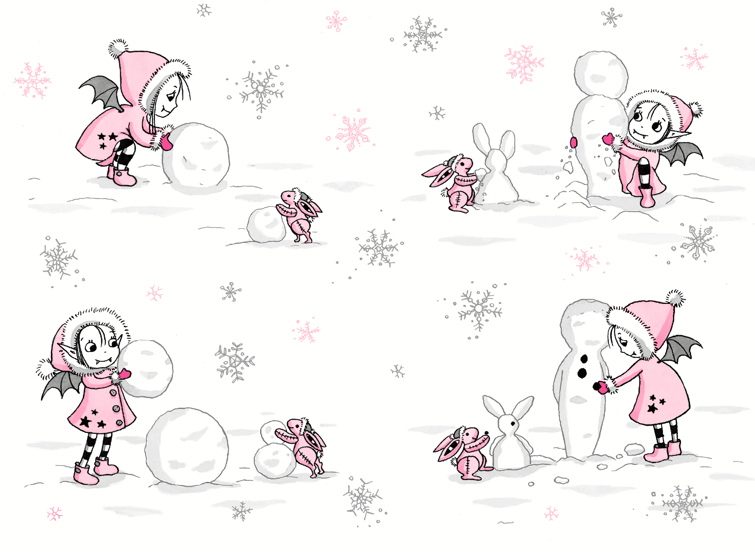 Но Розовый Кролик не собирался мне помогать. Он уже делал собственного снеговика, точнее, снежную крольчиху.