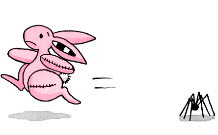 Розовый Кролик же не мог кричать, поэтому он ликовал, размахивая в воздухе лапками.
