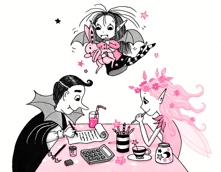 С тех пор, как я пошла в школу, меня уже столько раз приглашали на дни рождения! А всё потому, что у меня много друзей. Их праздники невероятно интересные и очень отличаются от тех, которые мы устраиваем дома. Раньше, когда у меня не было друзей – обычных детей, меня приглашали на дни рождения только вампиры и феи. Не удивляйтесь, просто моя мама – фея, а папа – вампир! Да-да, так и есть!