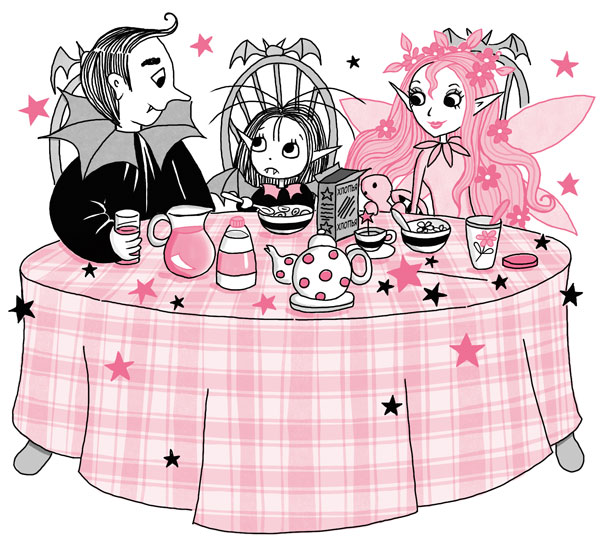 Я только пожала плечами, продолжая жевать. Ведь я наполовину фея, а наполовину вампир, и еда мне нравится всякая-разная. Даже человеческая! И кстати, моя младшая сестрёнка, малышка Вишенка, в этом очень на меня похожа.